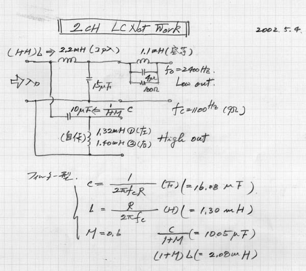 LCNet Workの定数決定には色々あるが、フィルター型を採用してfc=1100Hz,Rl=9Ωで計算。