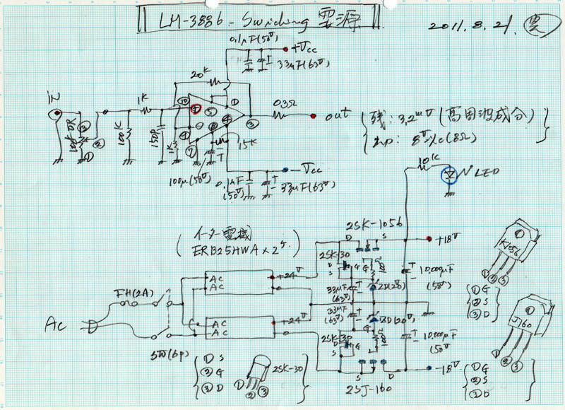スイッチング電源をヤオオクで安く落札したので、在庫のLM3886を用いてコンパクトなパワーアンプを作成した。