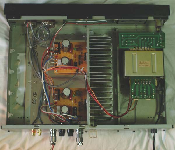 中身は、電源トランス、ケミコン、整流ブリッジのみを残して処分、ケースとヒートシンクを借用のヤドカリです。
