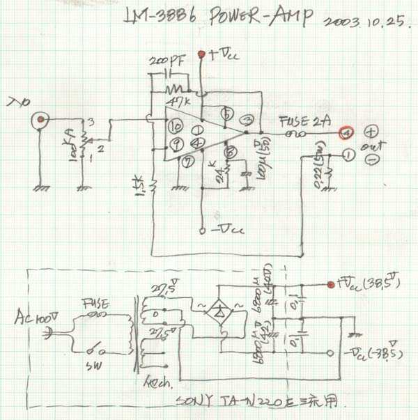 National Semiconductor 社 LM-3886 使用簡易TR Power Anp