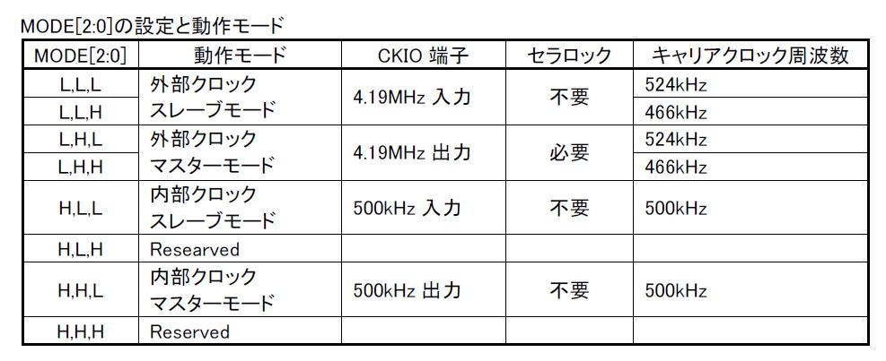 モード設定は下表を参考に「Master/ExtClock」を選択