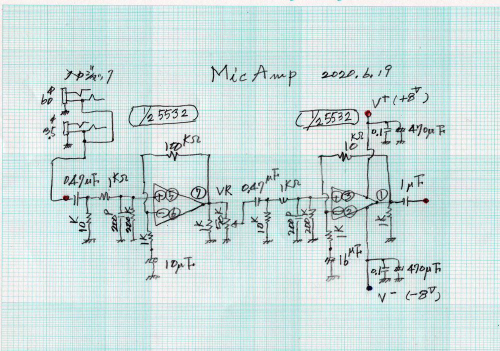 原行のステレオMicAmpをシリーズにしてモノに改造