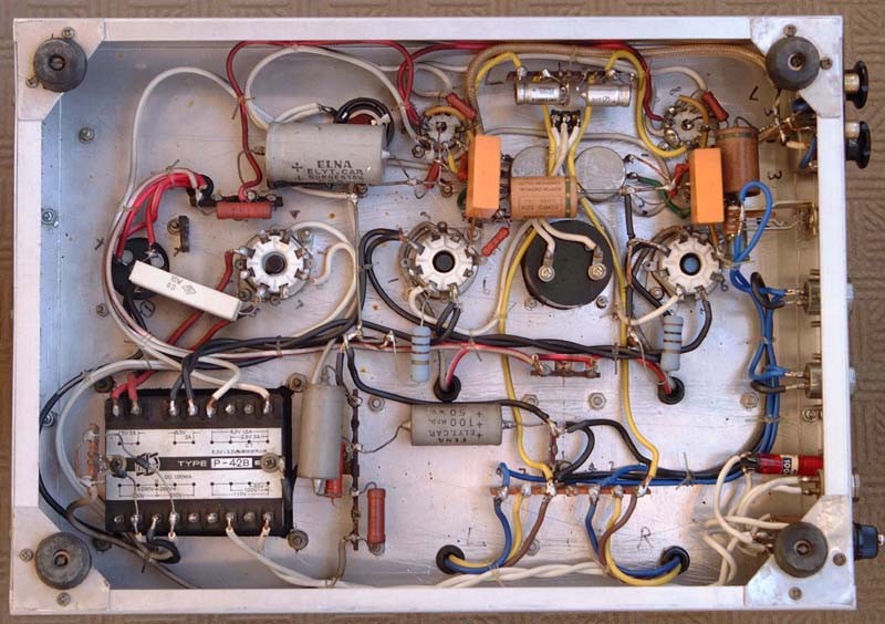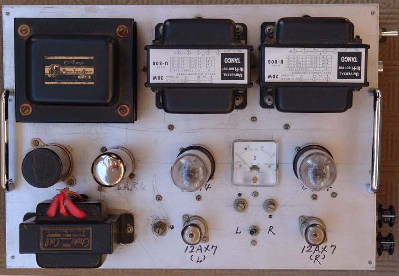 あり合わせのパワートランスを使ったので、プレート電流90mA(2本分)、ヒーター容量が3A(2本分)で制限される。